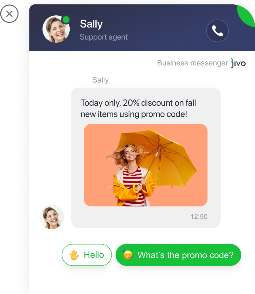 on selected pages to let more visitors know about current offers. Share promo codes with selected visitors directly in the chat using chat campaigns
