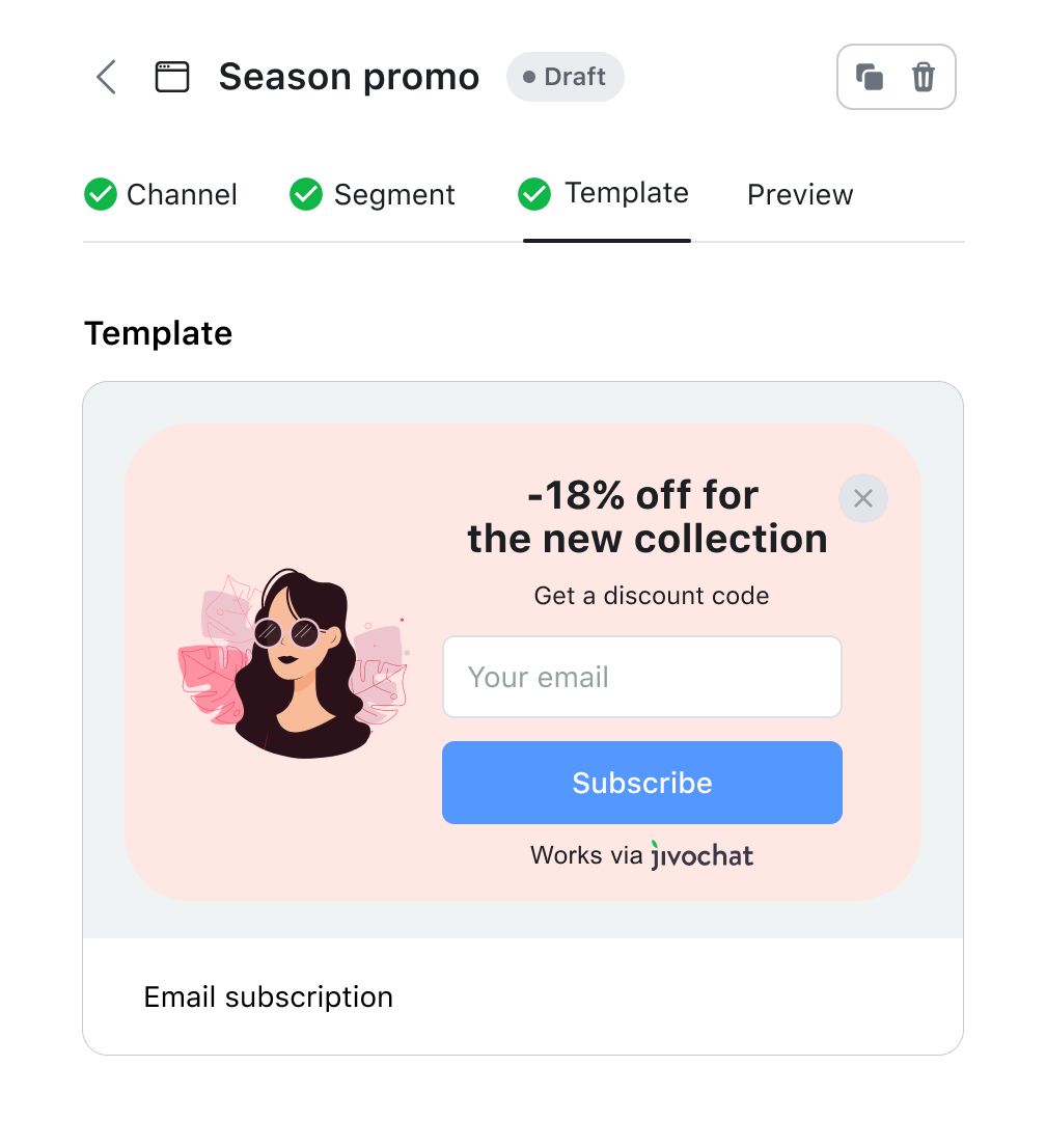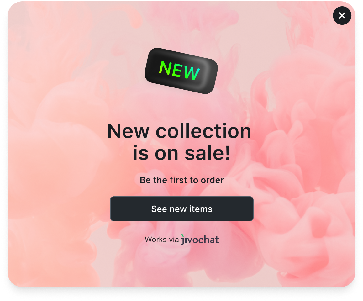 Configure popups that fit your style and design with colour themes and image options. Add images and emojis to chat chat campaigns to make your offers impossible to miss